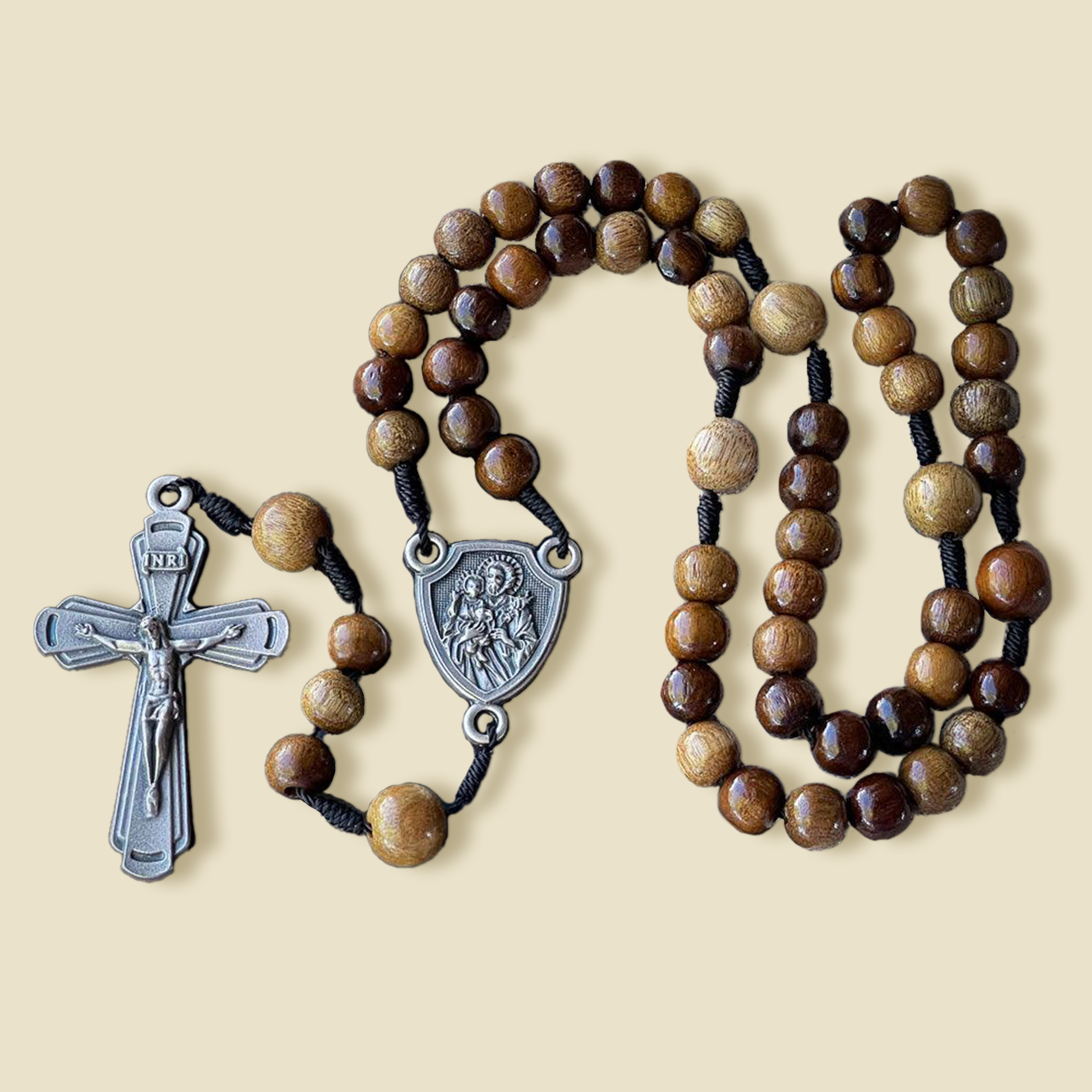 This rosary is made with heart from an ethical catholic company in Brazil that casts and manufactures several of our parts including our custom St. Joseph the Guardian, Portuguese Miraculous Medal, and Benedict Medal centerpieces, our custom Full Armor crucifix, as well as our Imbuia beads.