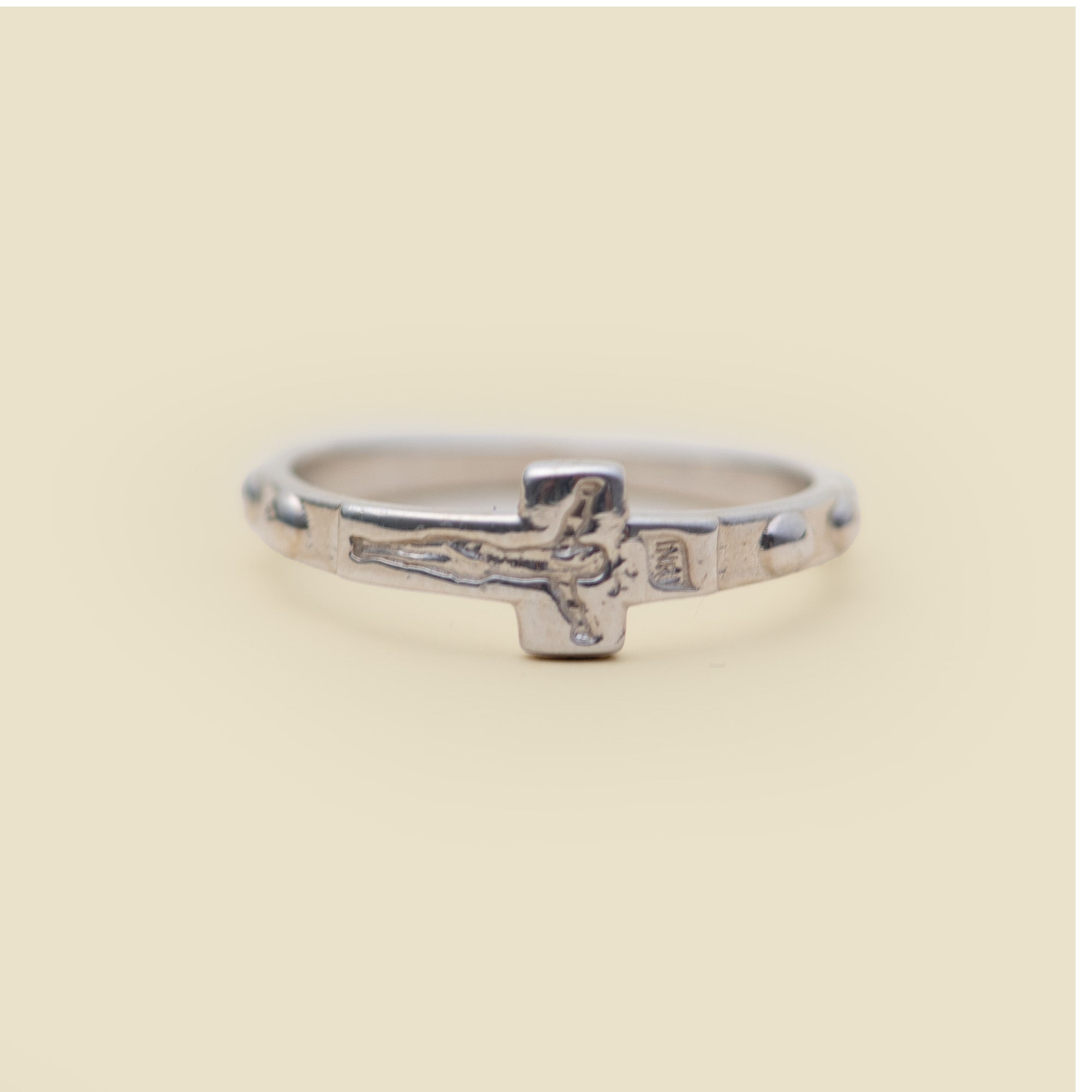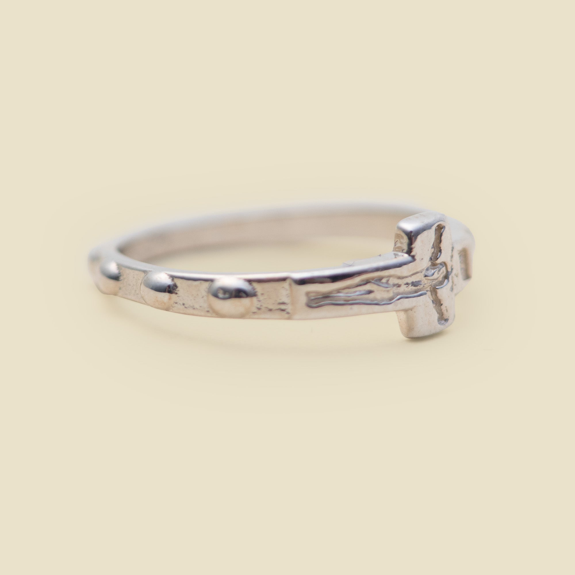 Our rosary ring is made of premium sterling silver with a crucifix surrounded by 10 bumps which represent a decade of the Rosary. Wear the rosary ring as a subtle and easy way to pray the Rosary.