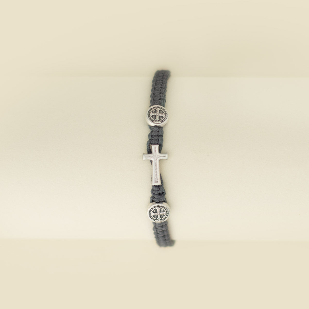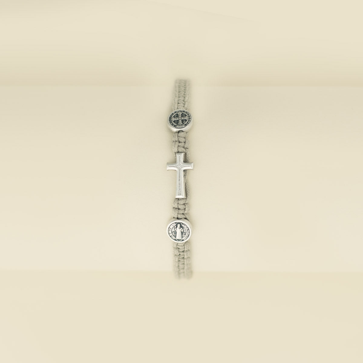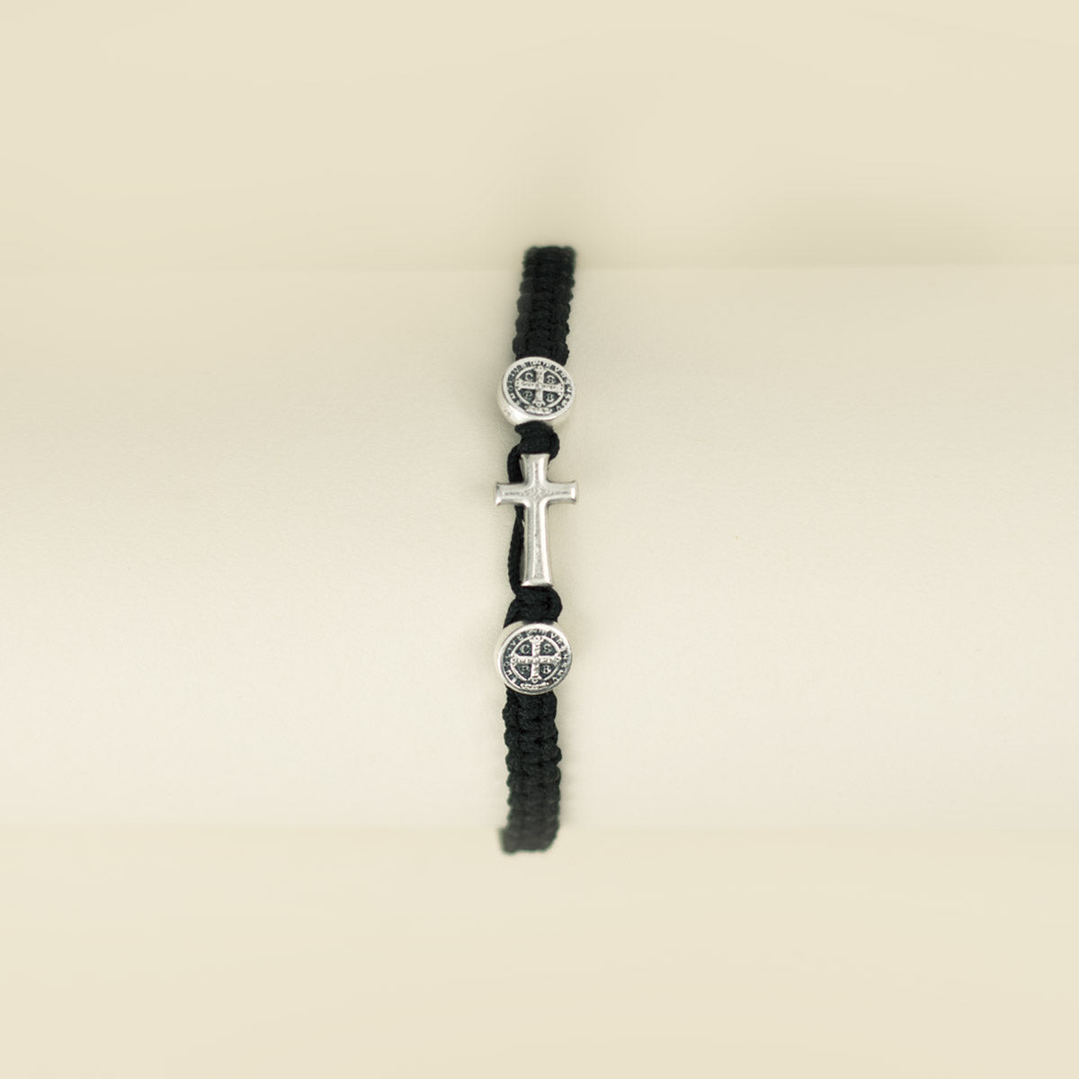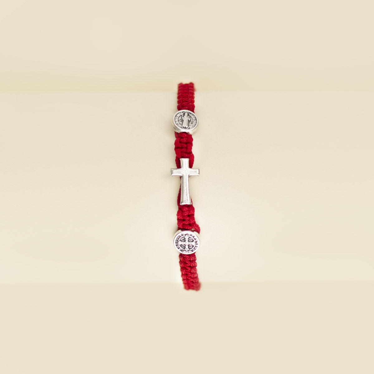 Handcrafted in Medjugorje, and paired with a free gift blessed by the Pope, these beautiful Benedictine Medal and Cross bracelets have two silver St. Benedict medals on either side of a cross, all woven in the macrame. Designed with an adjustable slipknot, these bracelets are made to fit on any wrist. A strong devotion to St. Benedict and this medal is known to be a protection against evil and to bring the blessing of a happy death.