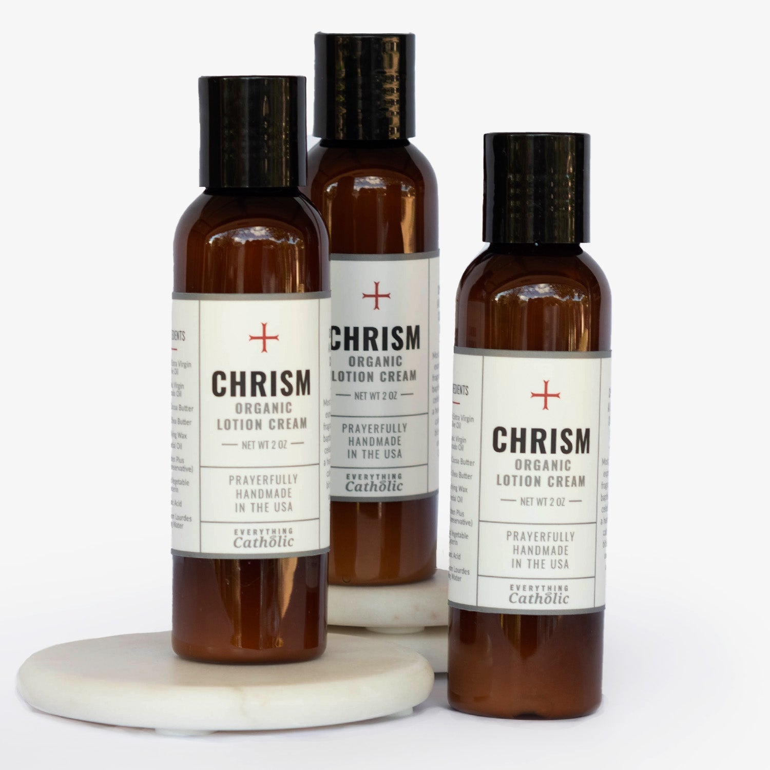 Made with organic shea butter and authentic chrism essence, our lotion moisturizes the skin and leaves you smelling like a newly baptized baby for hours and hours.