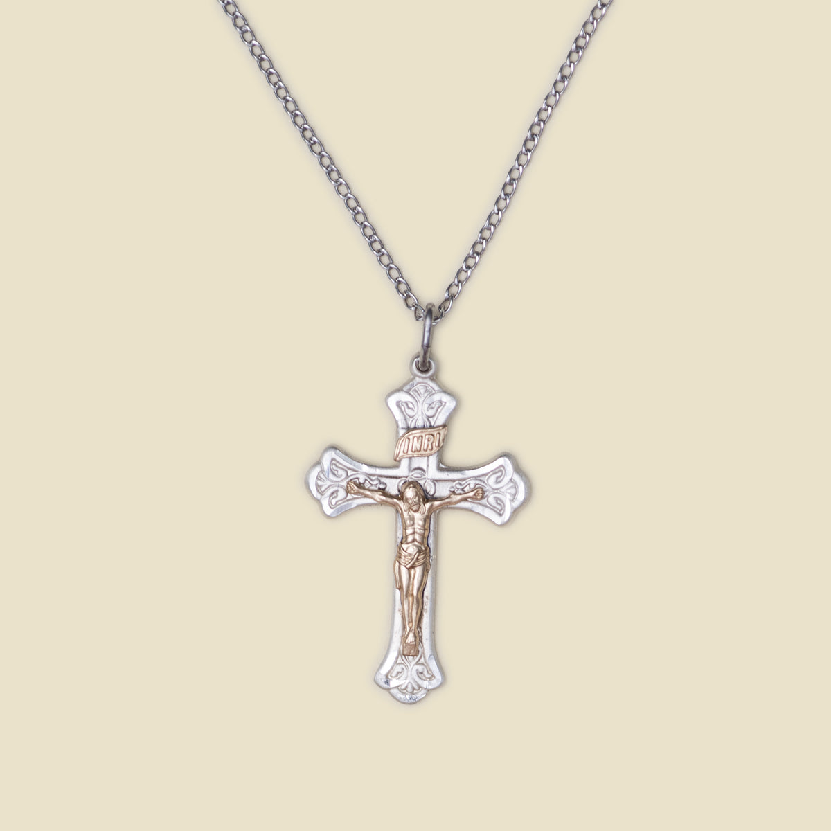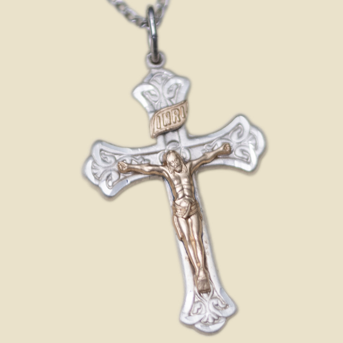 Sterling Silver and Gold Filled Two-Tone Crucifix Necklace